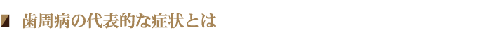 歯周病は初期に痛みなどの目立った症状がなく、自分では気づきにくい病気です。こちらでは、歯周病の代表的な症状をご紹介します。あなたは大丈夫ですか? 一度チェックしてみましょう。